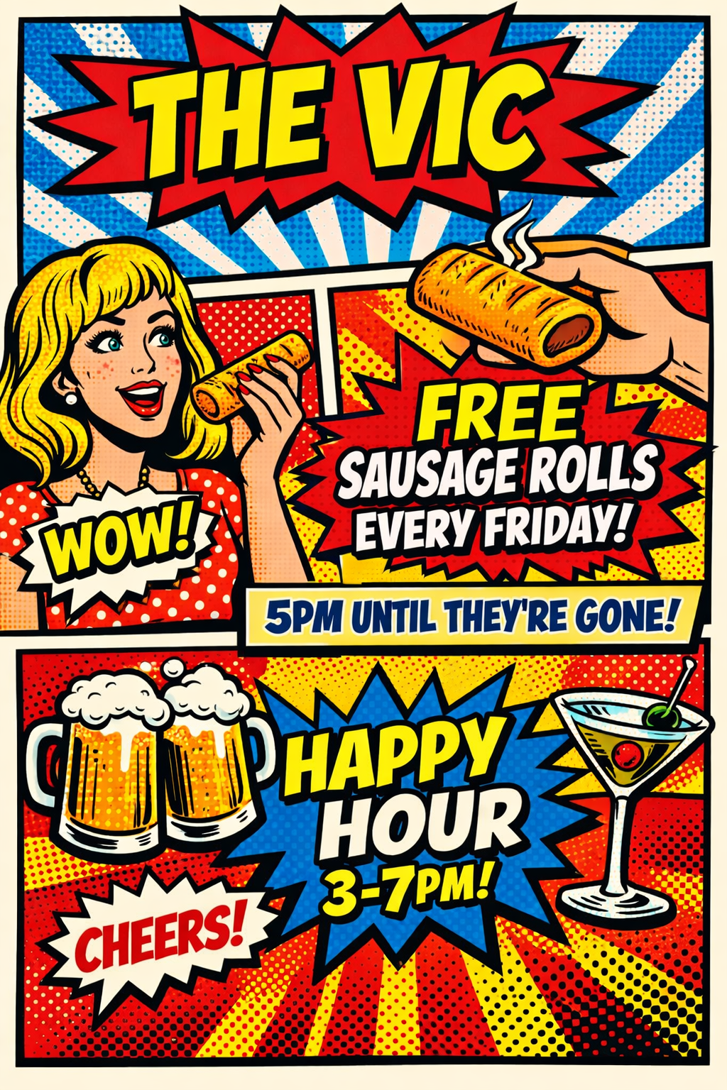 To go alongside our Happy Hour (3–7pm), we’re serving up FREE sausage rolls every Friday from 5pm. Yes, really — completely free.